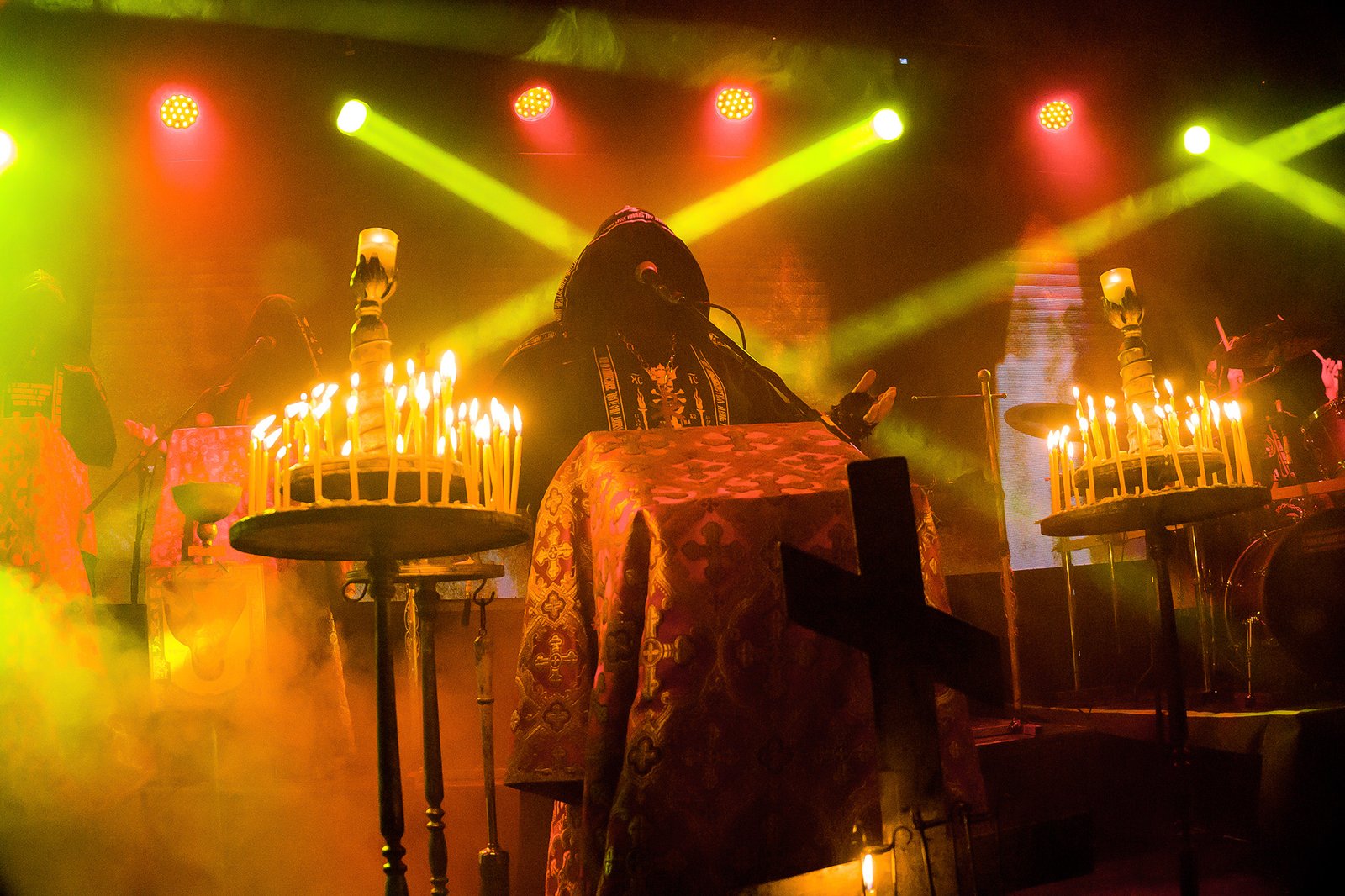 La sala totalmente iluminada de rojo comenzaba a inundarse de cantos gregorianos que ambientaban el ingreso del batushka, es decir, el padre o sacerdote encargado de encabezar el culto, Bartłomiej “Bart” Krysiuk, quien provisto de un incensario procedió a bendecir a los devotos para que, luego de un campanazo, iniciara “Yekteniya I”, canción que abre el disco Litourgiya (2015)
