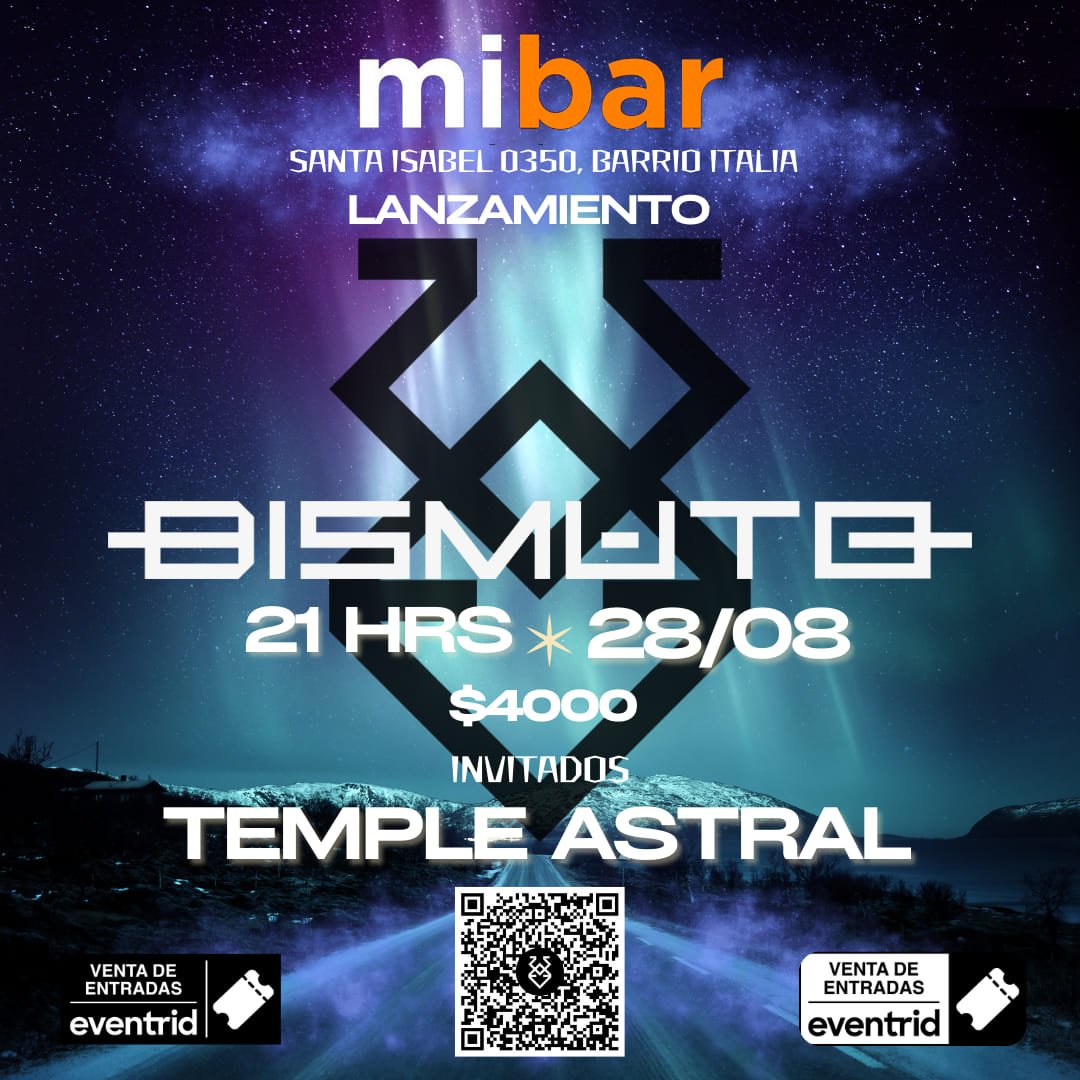 La banda chilena Bismuto se presentará en vivo en el clásico MiBar, en lo que será el debut de la agrupación que cultiva el metal progresivo con tintes metalcore y melódicos. El show será el día 28 de agosto, desde las 21 hrs, y contará con la presencia de Temple Astral, quienes vienen regresando desde Argentina, donde registraron su próximo disco, en los estudios Romaphonic. Además, Bismuto ha anunciado la liberación de su primer sencillo, la canción; Espejos Negros el día jueves 22 de agosto.