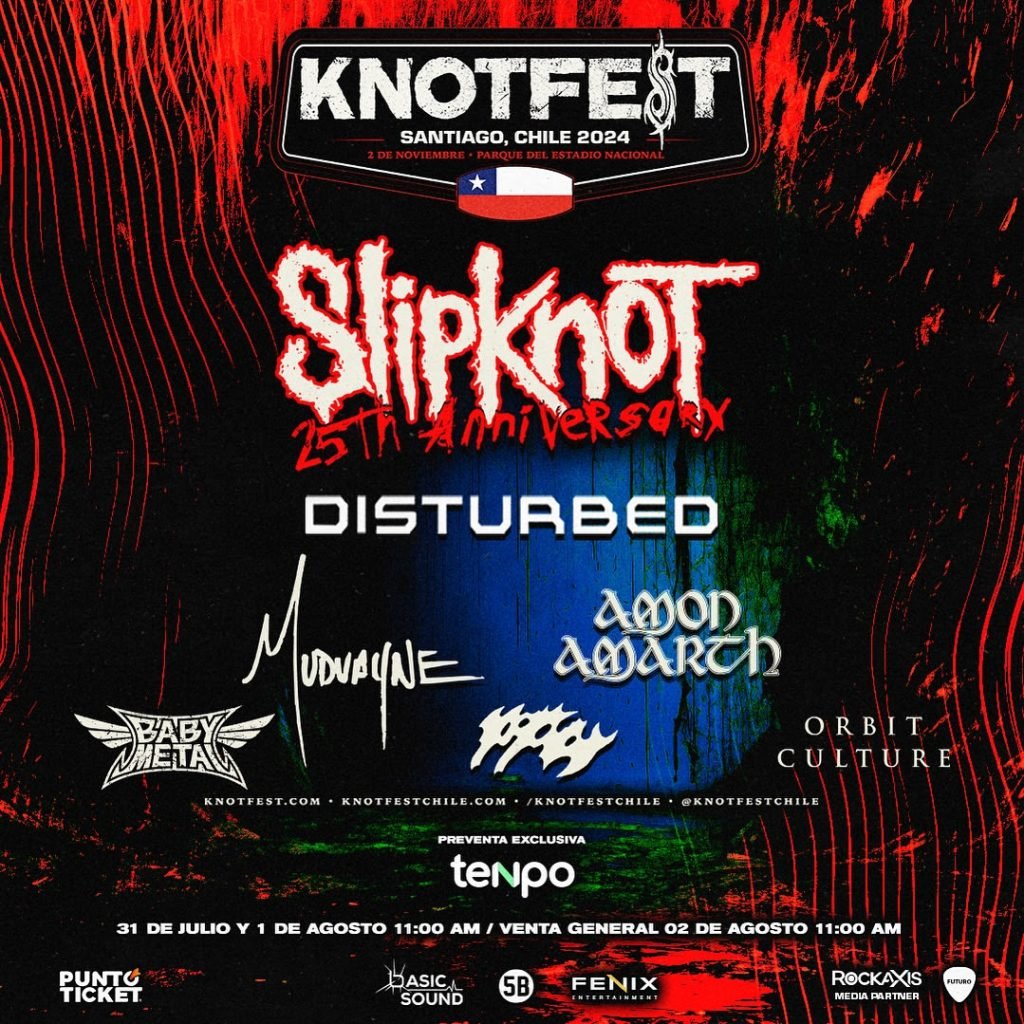 Knotfest 2024, tendrá como anfitriones a Slipknot, junto a un poderoso cartel de artistas compuesto por Disturbed, Mudvayne, Amon Amarth, BabyMetal, Orbit Culture y Poppy. Los chilenos en tanto, estarán representados por las destacadas bandas Rama y Mawiza.
