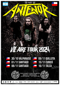 El tour comenzará el 30 de Octubre, y power trio Argentino permanecerá en el país hasta el 16 de noviembre, compartiendo escenarios con grandes bandas de la escena. Disipando el Vil Aire, Antenor sigue levantando la bandera del Thrash Groove Argentino.