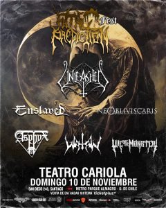 Con un cartel de alto nivel, el festival promete una experiencia inolvidable para los amantes del metal. La jornada contará con la aclamada banda australiana Ne Obliviscaris, reconocida por su fusión de metal progresivo y elementos sinfónicos; Enslaved, pioneros del metal extremo noruego; Unleashed, legendarios exponentes suecos del death metal; Asphyx, robustos representantes del death/doom metal holandés; el extremo black metal de Watain e, iniciando los fuegos, estarán los locales We Are The Monster, quienes aportarán con su talento y una notable puesta en escena.