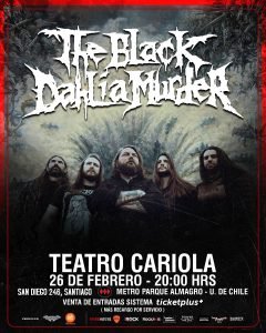 Tras más de ocho años desde su última visita, los estadounidenses de The Black Dahlia Murder regresarán a nuestro país con nuevo disco y, además, con un reorden en su alineación luego del lamentable fallecimiento de Trevor Strnad en 2022, quien fue líder y cofundador de la banda. La cita será el próximo 26 de febrero en el Teatro Cariola.