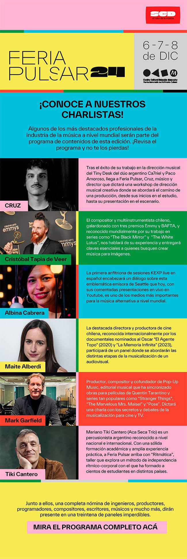 Algunos de los más destacados profesionales de la industria de la música a nivel mundial serán parte del programa de contenidos de esta edición. ¡Revisa el programa y no te lo pierdas!