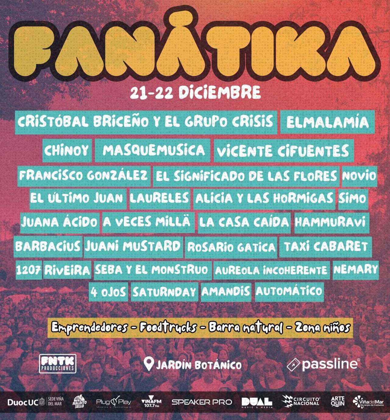 Fanatika Fest invita a celebrar la cultura los días 21 y 22 de diciembre en el Jardín Botánico de Viña del Mar, desde las 12:00 hasta las 20:00 hrs.