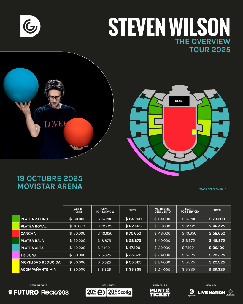 Steven Wilson, músico, compositor y productor nominado 6 veces a los premios GRAMMY®, ha anunciado la esperada gira “The Overview Tour“, su primera en solitario con banda completa en Estados Unidos, Canadá, México, Brasil y Chile en más de siete años. La gira comenzará el 9 de septiembre en The Masonic de San Francisco (California) y continuará hasta mediados de octubre. En Chile, el artista realizará un único show en Santiago, el 19 de octubre, en el Movistar Arena.