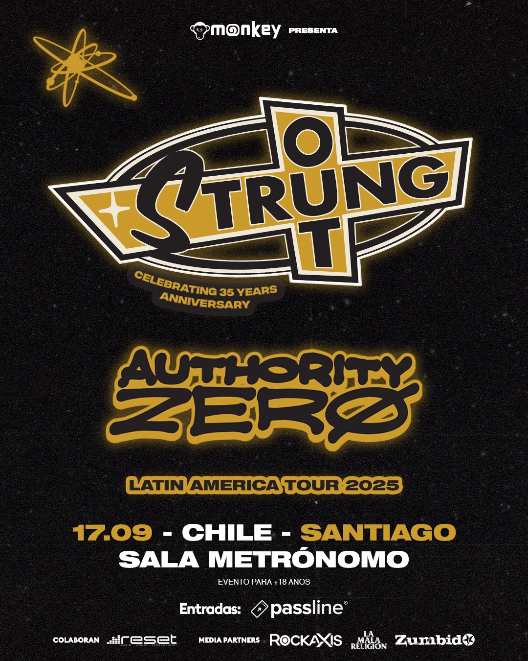 Strung Out, la banda originaria de Simi Valley, California (Estados Unidos) y formada en 1989 regresa a Chile para celebrar sus 35 años de formación y en este tour decidieron venir acompañados de Authority Zero. La cita será el miércoles 17 de septiembre en Sala Metrónomo. Evento para +18 años.