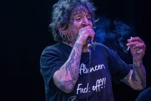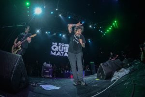 Cuando Evaristo apareció en escena, el teatro estalló por completo; la ansiedad de su público ya estaba al máximo. Acompañado por músicos de gran trayectoria, que han formado parte de sus proyectos más reconocidos, el músico interpretó clásicos de La Polla Records como “Salve”, “Carne para Picadora”, “Los 7 enanitos” y “No somos Nada”, entre otras. Además, incluyó temas de sus otras bandas paralelas hasta culminar con “Ellos dicen mierda”, himno ya emblemático en que un público aún con ganas de seguir, coreó, bailó y saltó sin descanso, cerrando el concierto en un estallido de emoción y pogo colectivo.