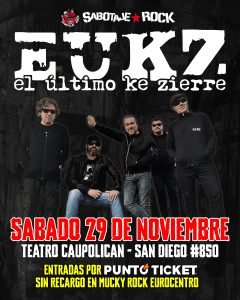 Las entradas están a la venta en PUNTOTICKET y físicas y sin recargo única y exclusivamente en MUCKY ROCK STORE – Eurocentro, local 0212.
