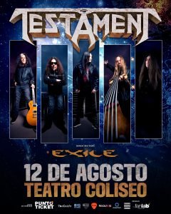 El Teatro Coliseo de Santiago será testigo de una jornada histórica para el thrash metal, con el regreso a Chile de Testament, una de las bandas más emblemáticas del género. Para encender aún más los motores, se ha confirmado que la agrupación chilena EXILE será la encargada de abrir el concierto como invitada especial.La cita es el próximo 12 de agosto y las entradas ya están disponibles a través del sistemaPuntoticket.