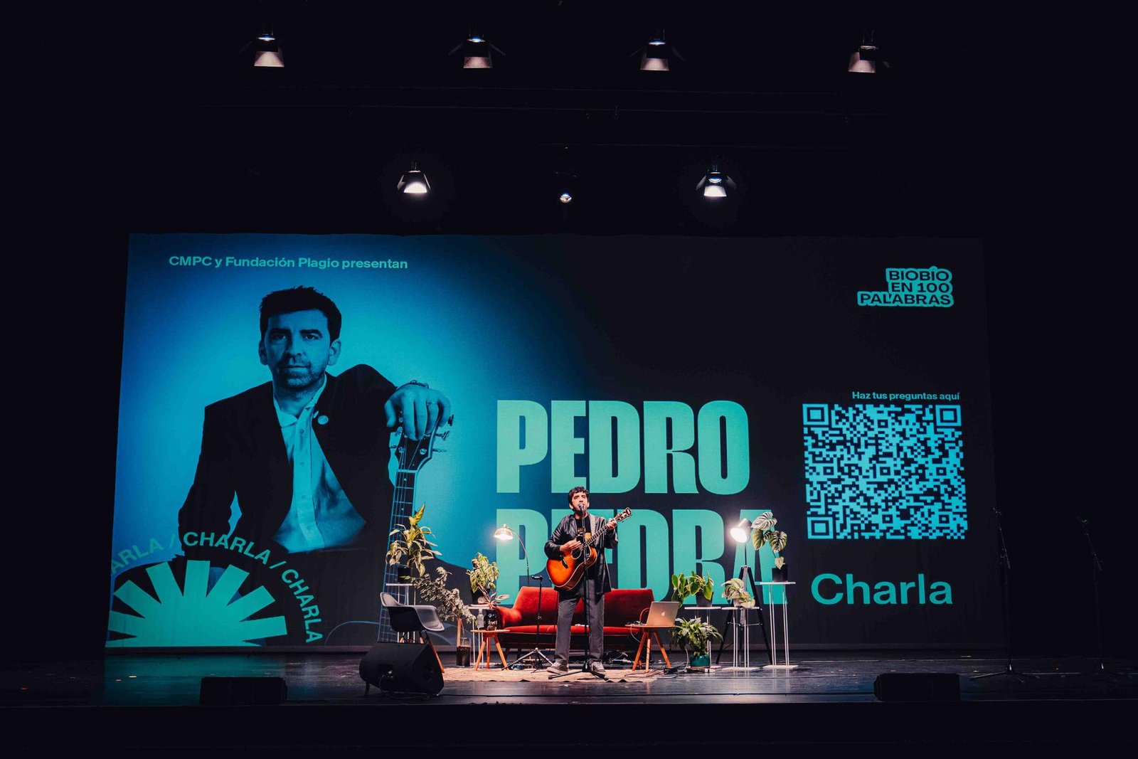 Entre anécdotas de su proceso creativo y fragmentos de canciones, Pedropiedra reveló cómo una historia puede caber en 100 palabras, cuyo relato despertó risas y silencios cómplices entre el público. El momento más emotivo fue cuando entonó algunas de sus canciones para los y las asistentes al evento, donde el teatro se transformó en un coro de ideas donde todos fueron compositores de lo cotidiano.