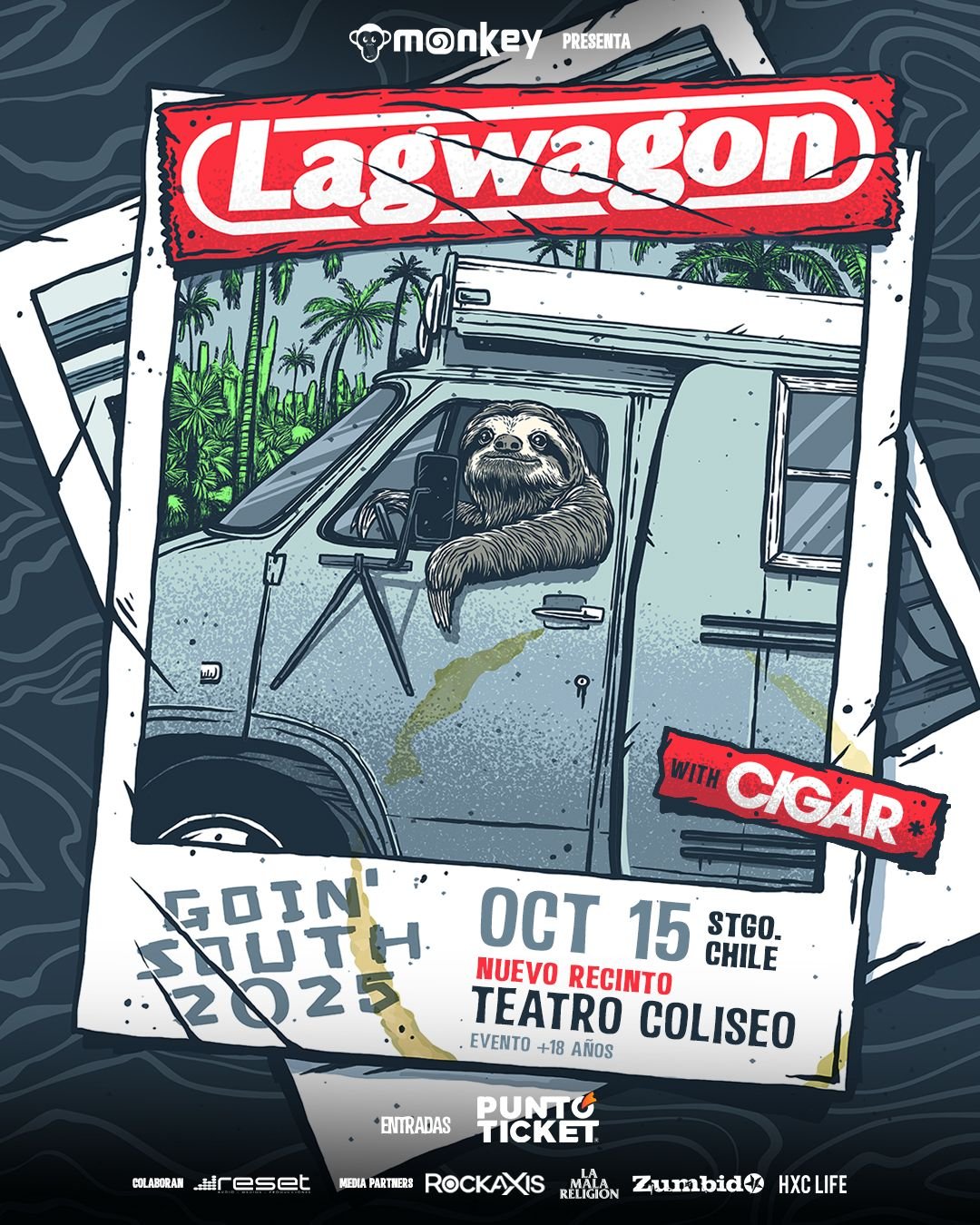 9 años han pasado desde la última presentación de Lagwagon en nuestro país, quienes en esta oportunidad regresan junto a Cigar en el marco de su gira “Goin’ South 2025”. La fecha, que fue sold out hace varias semanas y se realizará el 15 de octubre, cambia de recinto a Teatro Coliseo (Nataniel Cox #59, Santiago).