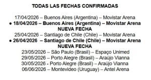 Tras el rotundo éxito de ventas de la primera fecha en Santiago de Chile, Jorge Drexler anunció un segundo show en el Movistar Arena para el domingo 26 de abril de 2026, en el marco de su esperada gira por el cono sur.