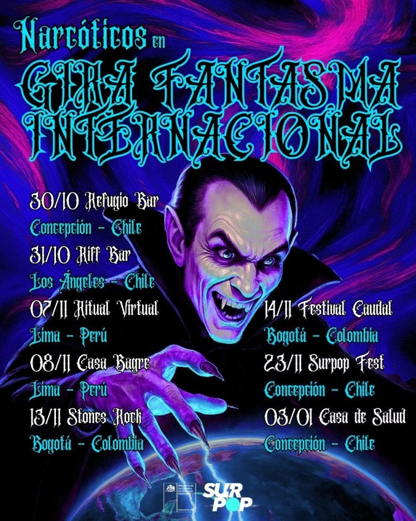 Consolidándose como una de las agrupaciones más interesantes del circuito neo gótico latinoamericano, Narcóticos anuncia su gira por Perú, Colombia y Chile, con motivo del lanzamiento de su nuevo single “El hijo pródigo de la oscuridad” estrenada en Halloween a través de Bandcamp.