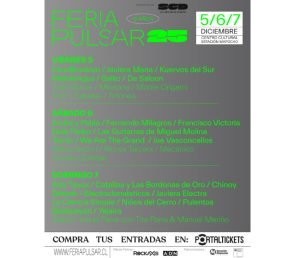 Con un total de 37 conciertos, distribuidos en dos grandes escenarios a lo largo de tres jornadas, Feria Pulsar 2025 apunta a consolidar su sitial como el punto de encuentro más importante de la industria musical chilena. Los tickets se encuentran a la venta en la plataforma Portaltickets en la modalidad de pases diarios, por valores generales $10.000 el viernes a $14.000 el sábado y domingo (más cargos por servicio).
