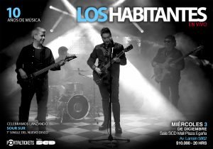 Los Habitantes celebran diez años de música lanzando un nuevo sencillo. Sala SCD Mall plaza Egaña La Reina Miércoles 3 de diciembre, 19:30 hrs Entradas en portaldisc.com