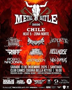 Desde las 16:00 horas, el Club Camce (Sierra Bella #2115, Santiago Centro) será el escenario donde nueve bandas competirán con toda su potencia por avanzar a la siguiente fase del certamen. El objetivo es claro: alcanzar la gran final internacional en Perú y luego disputar la oportunidad de representar a Chile en uno de los festivales de metal más importantes del mundo.