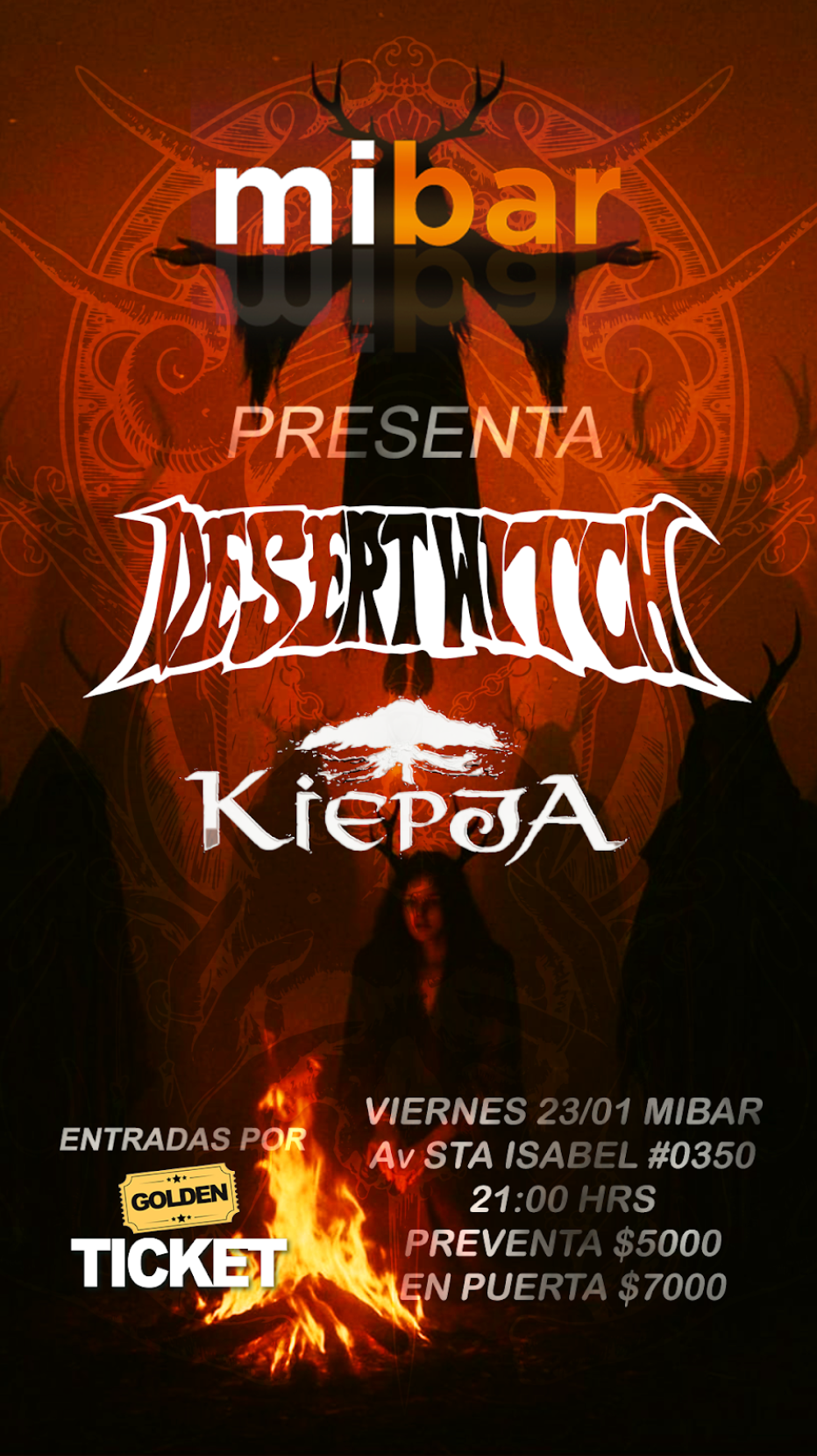 El próximo Viernes 23 de Enero las bandas Desert Witch y Kiepja se presentan en un Show único en MiBAR .