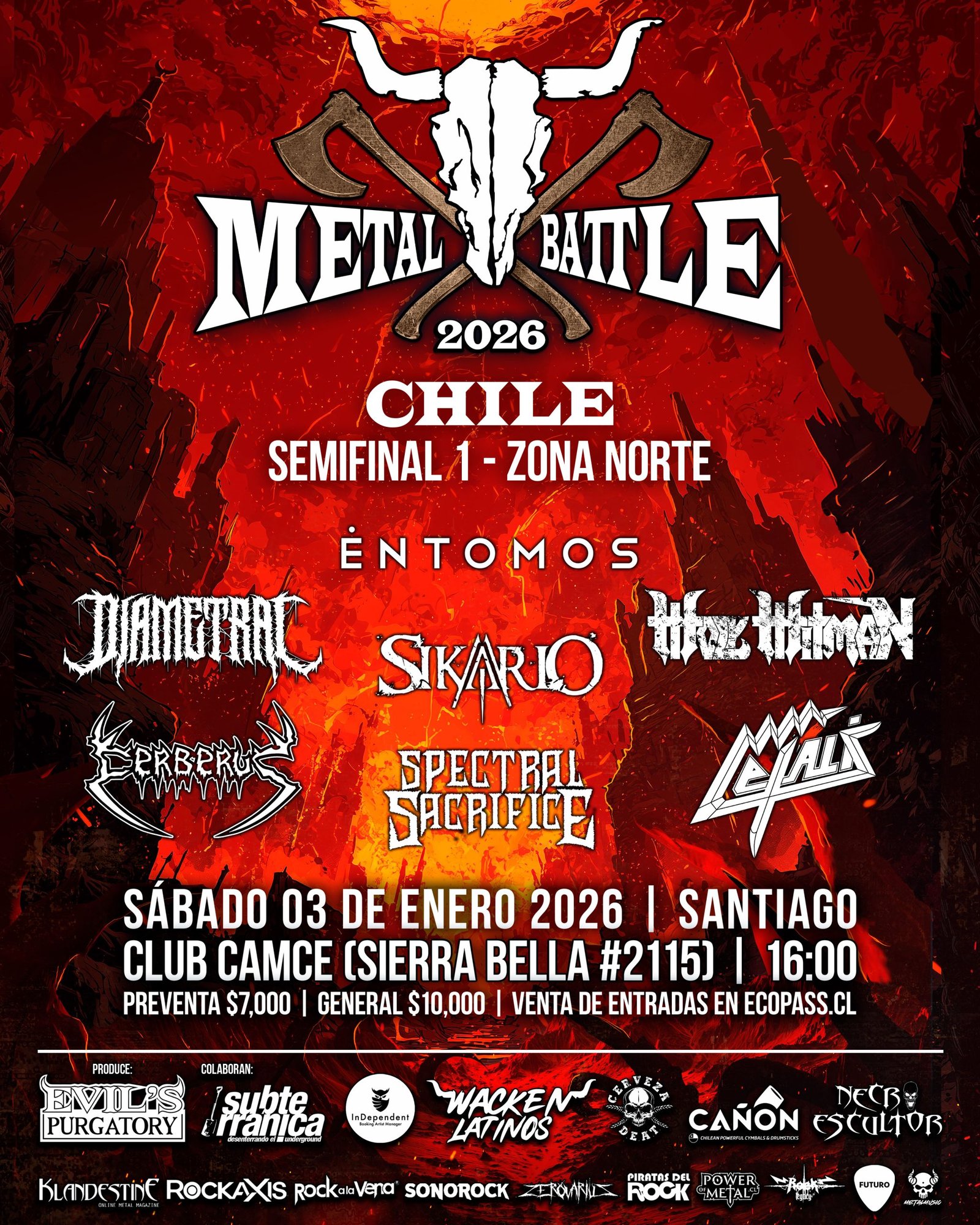 ENTOMOS (Santiago), DIAMETRAL (Santiago), SIKARIO (Santiago), HOLY HITMAN (Santiago), CERBERUS (Santiago), SPECTRAL SACRIFICE (Rancagua), LETALIS (Santiago)
