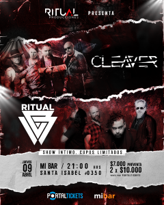 La escena del rock y metal alternativo chileno suma una nueva fecha en vivo este 9 de abril en Mi Bar (Santa Isabel 0350), con la presentación de las bandas Ritual y Cleaver, en un show que apuesta por la cercanía, la intensidad y la experiencia en vivo.