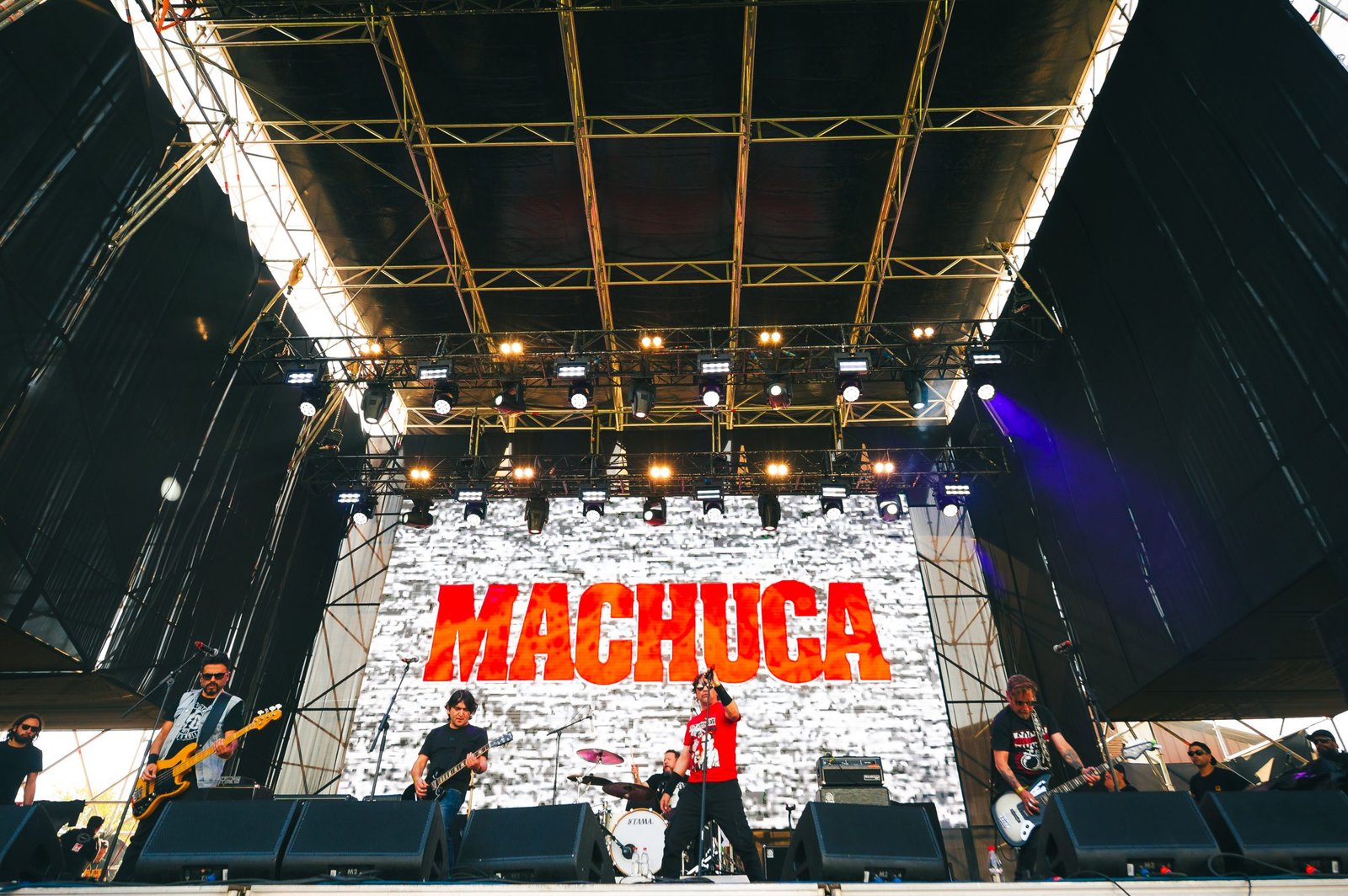 La presentación de la banda penquista Machuca, en tanto, optó por un formato más directo. Su set fue rápido, sin mayores pausas ni interacción extensa, apostando por la continuidad entre temas. El resultado fue efectivo: un bloque compacto, y con buena respuesta desde cancha, con un público ya en este horario más masivo, que coreó y cantó todo su repertorio, con temas como “La Bala de la Suerte”, “Ella”, “Al Patíbulo”, “Gozar Soñar”, “Desde mi Ventana”, de discos que ya son parte de la historia del punk nacional. Tocando además con dos bajos luego de la reincorporación del bajista original Claudio Infante, quien junto a Fabián Núñez complementan la innovadora dupla bajista, dándole más peso a esta icónica banda chilena.