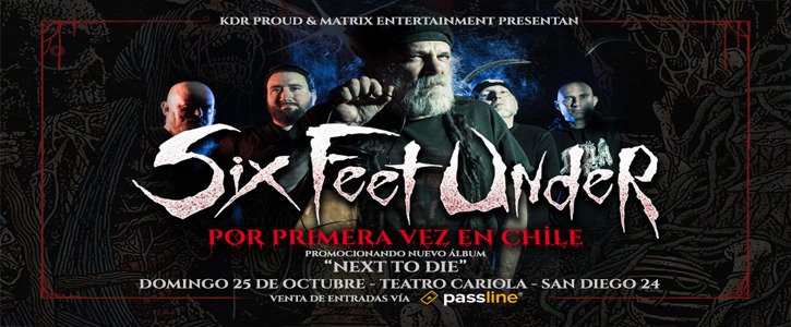 Las productoras KDR Proud y Matrix Entertainment anuncian el primer concierto en Chile de los íconos del Groove Death Metal: Six Feet Under.